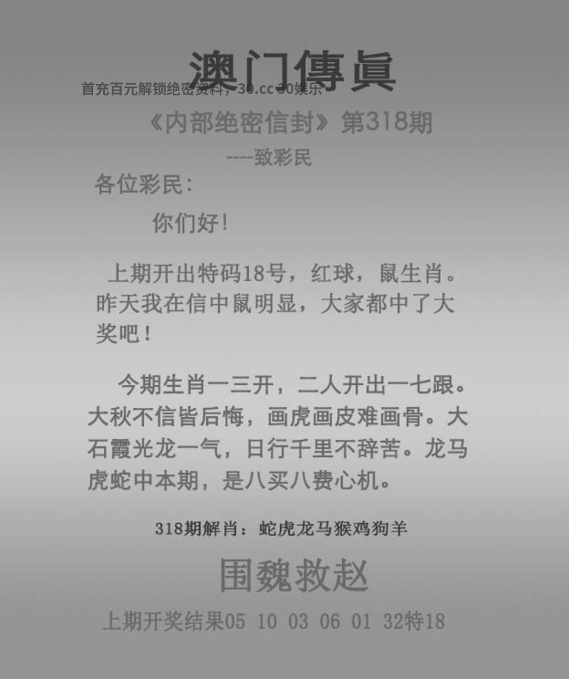 | 320期:独解传真 解:正在更新 送:正在更新 主特:正在更新 |